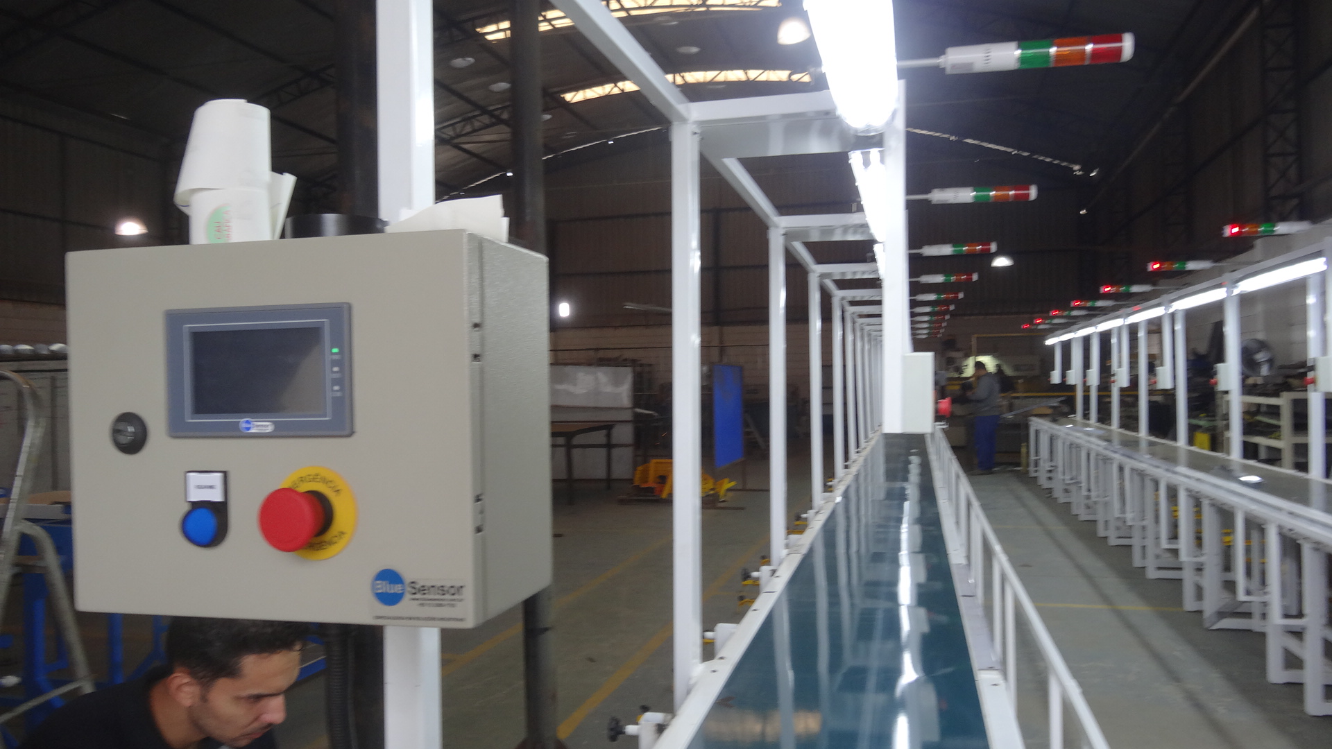 A BlueSensor realizou um serviço completo de adequação de uma esteira transportadora, elevando o nível de automação e segurança do sistema. Este projeto incluiu a programação de um Controlador Lógico Programável (CLP), a instalação de um painel de comando personalizado e a implementação de todo o sistema no local.